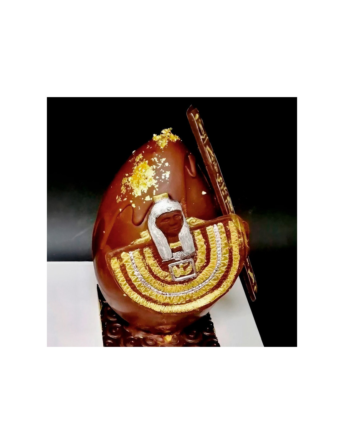 Molde de silicona con alto nivel de detalle para realizar una figura de chocolate con la forma de la máscara funeraria del faraón Tutankamón.