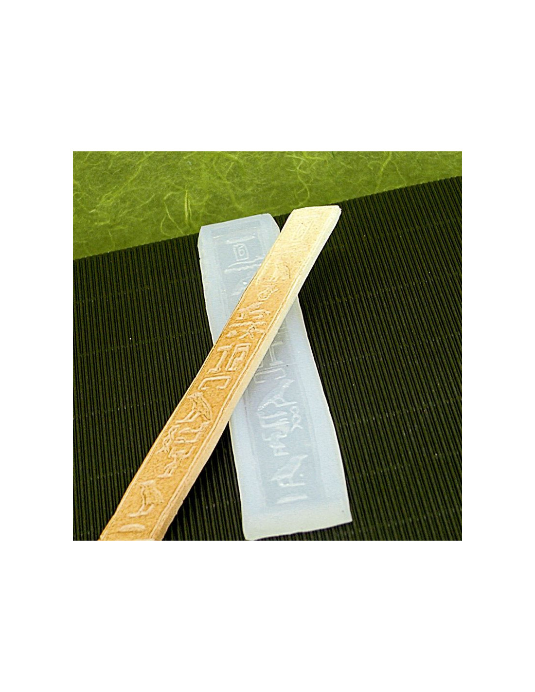 Molde de silicona alimentaria Estela egipcia N8 Decosil. Medidas cavidad: 57 x 17 x h5 mm. Volumen: 62 gramos.